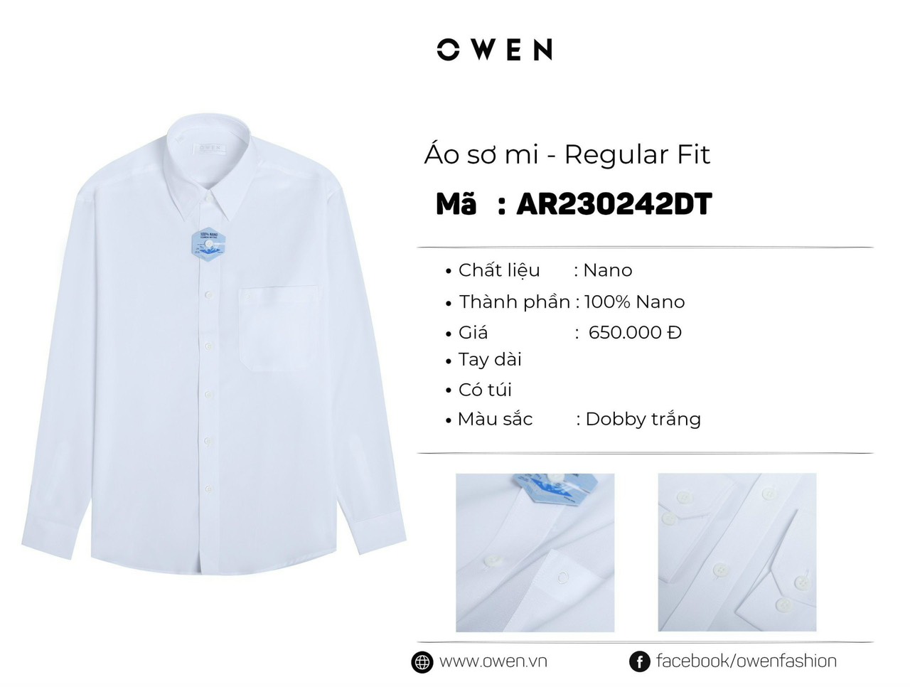 ÁO SƠ MI TRẮNG DÀI TAY NANO DOBBY CÓ TÚI AR230242DT