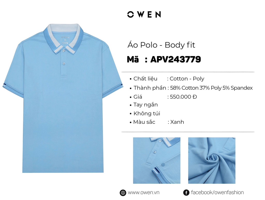 Thành phần: 58% Cotton, 37% Poly, 5% Spandex