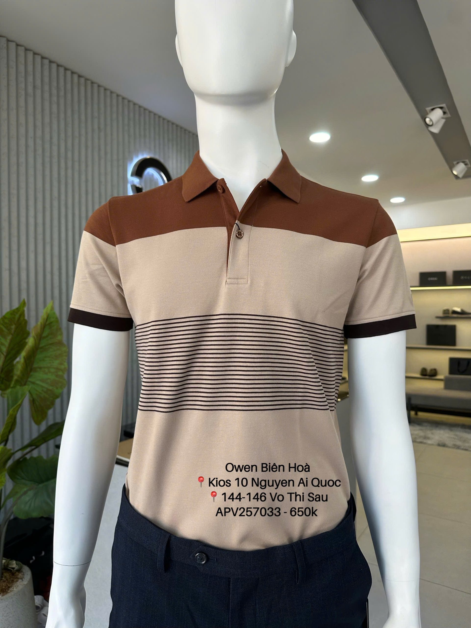 Áo polo Body Fit màu nâu be mang phong cách ấm áp, tinh tế và rất dễ mặc, phù hợp cho cả đi làm lẫn sinh hoạt hằng ngày.